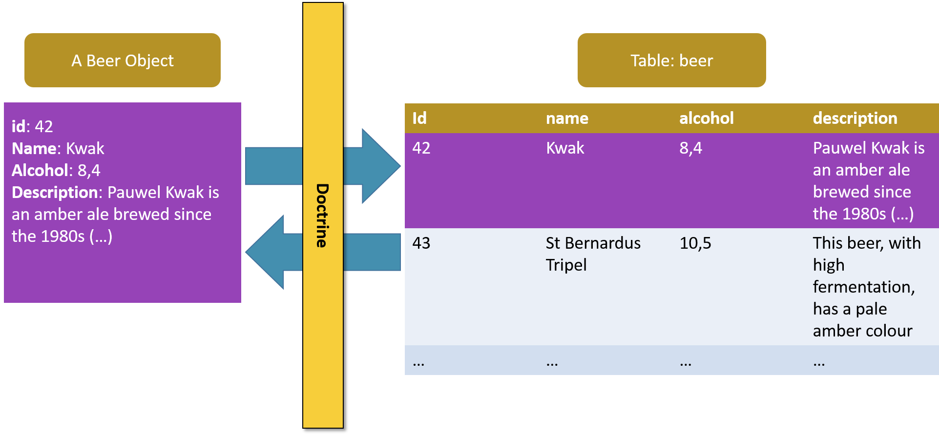 $aBeer = $em->getRepository('ConsertoBeerBundle:Beer')->find(42);